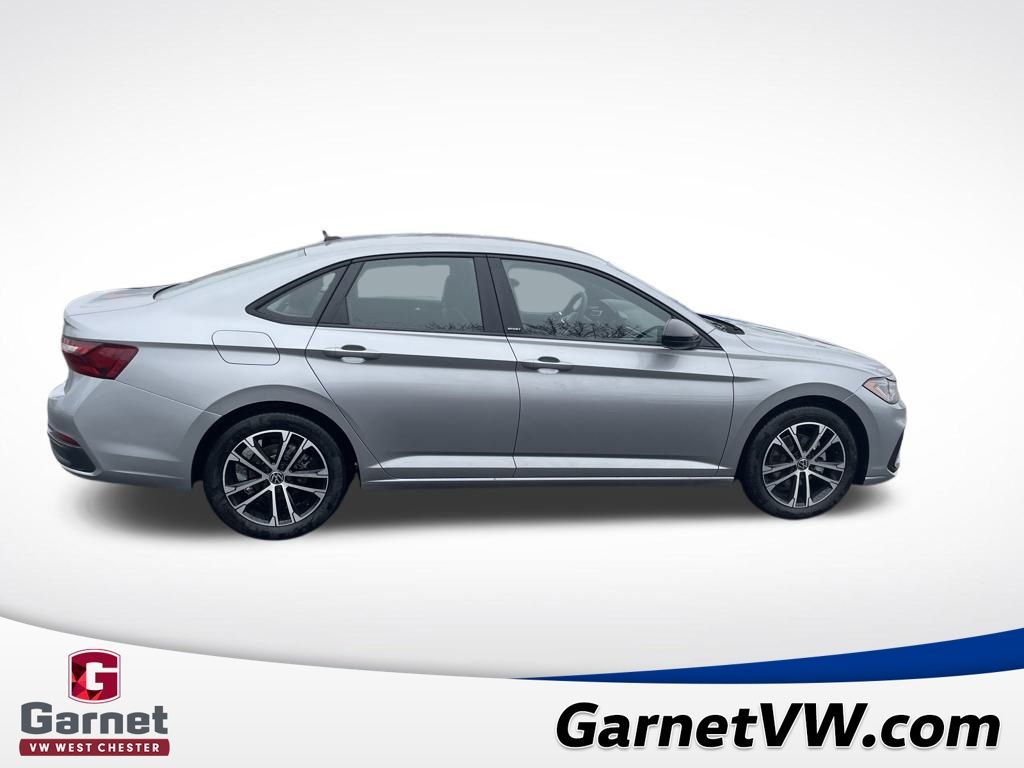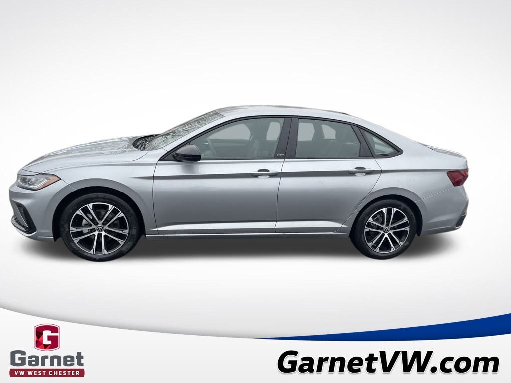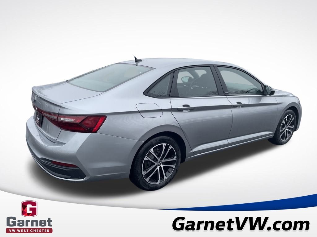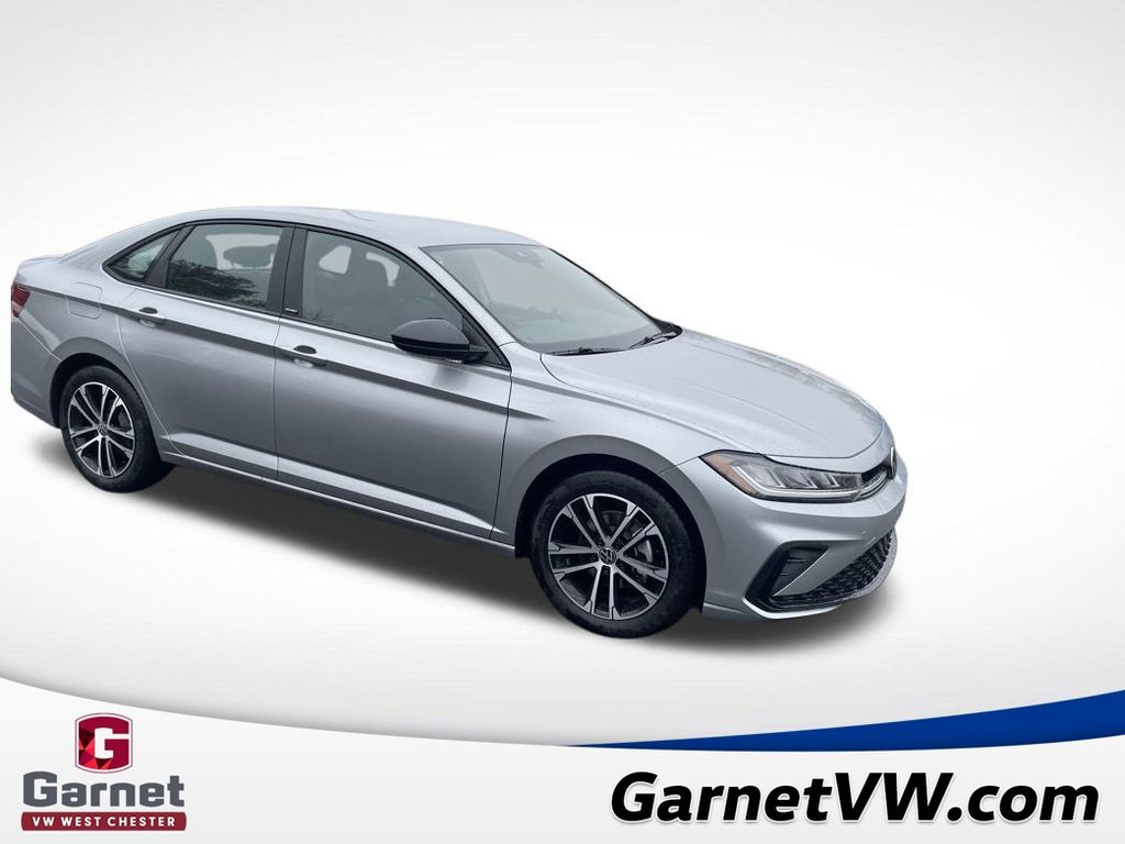 Silver 2026 Volkswagen Jetta 1.5T Sport FWD 8-Speed Automatic with Tiptronic 1.5L I-4 DI DOHC Turbocharged Black Cloth.