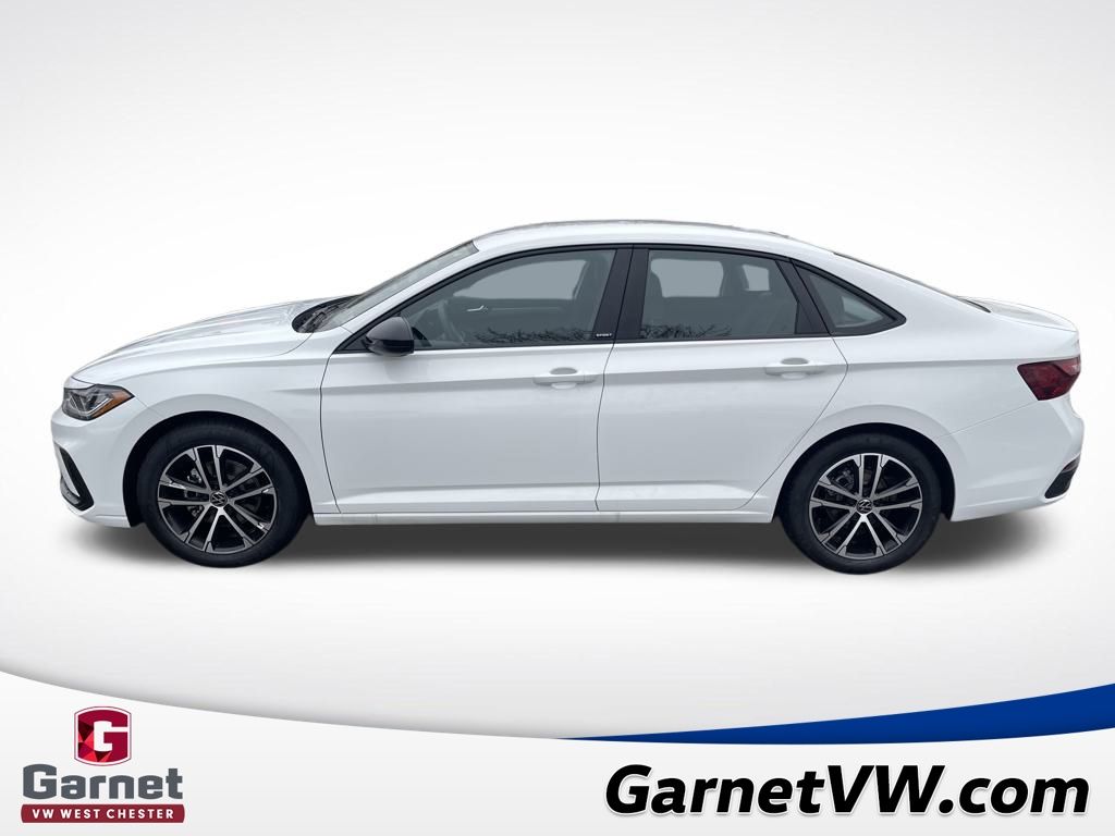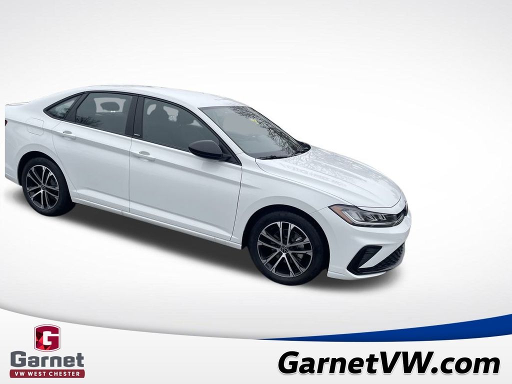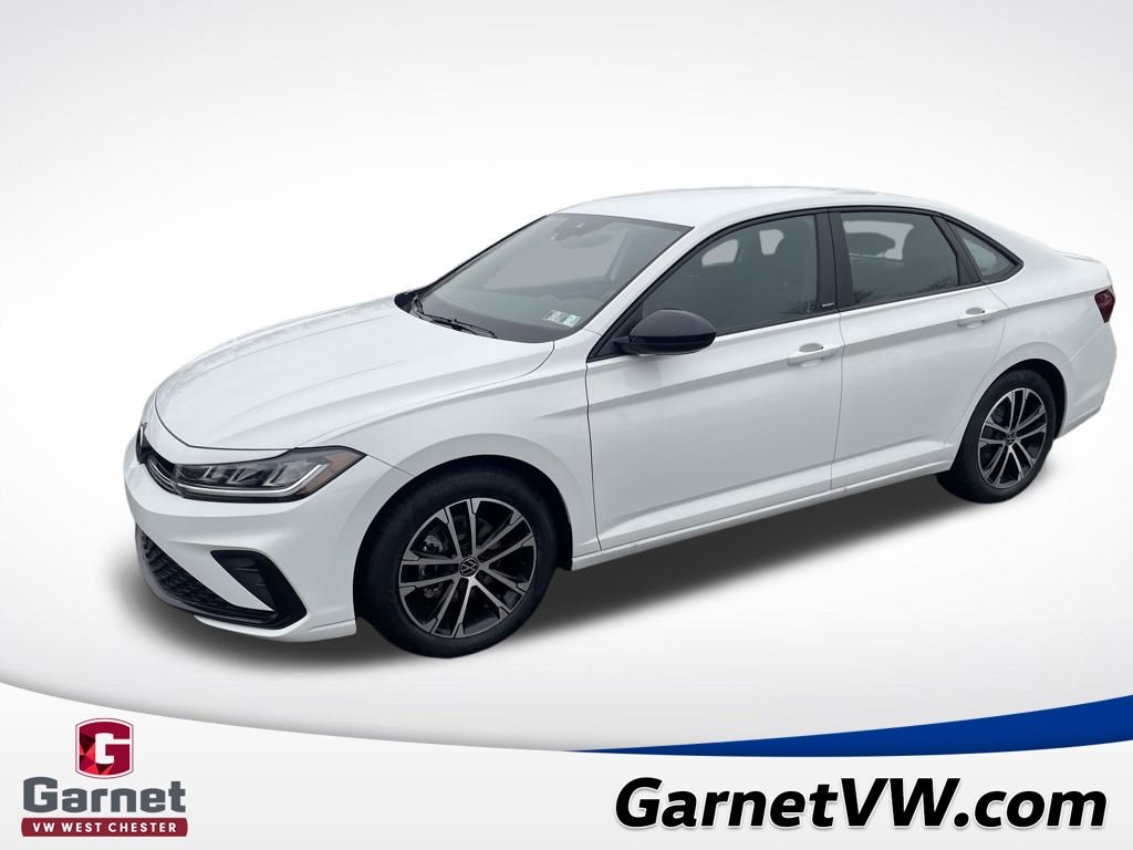 White 2026 Volkswagen Jetta 1.5T Sport FWD 8-Speed Automatic with Tiptronic 1.5L I-4 DI DOHC Turbocharged Black Cloth.