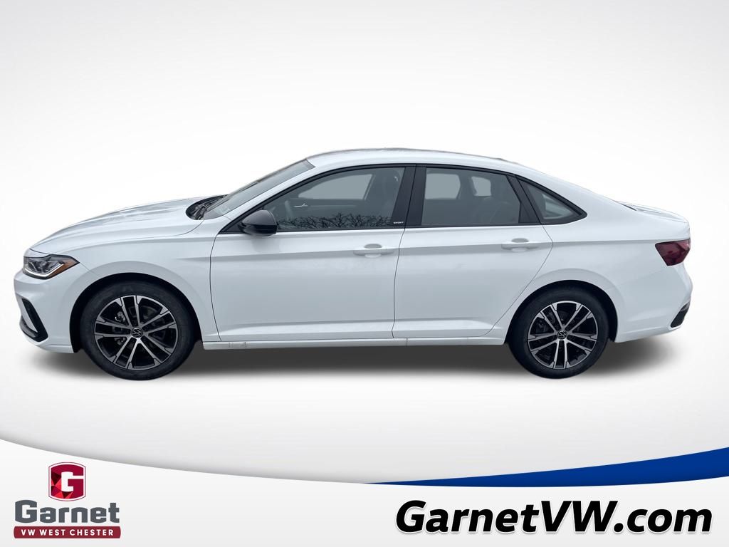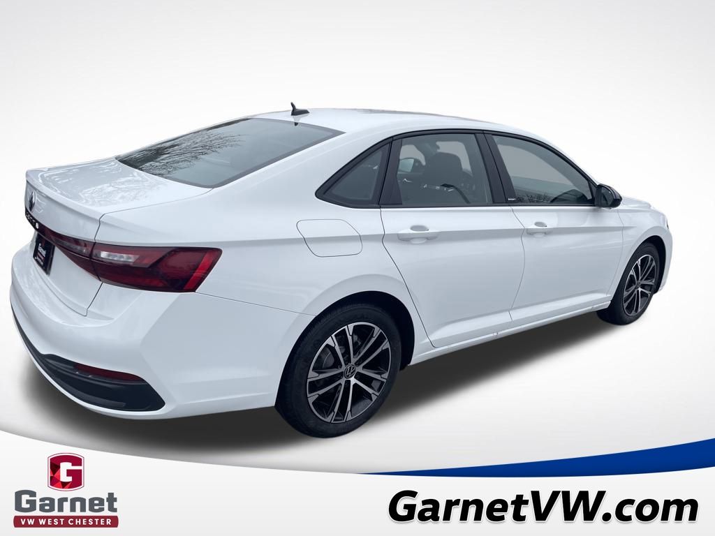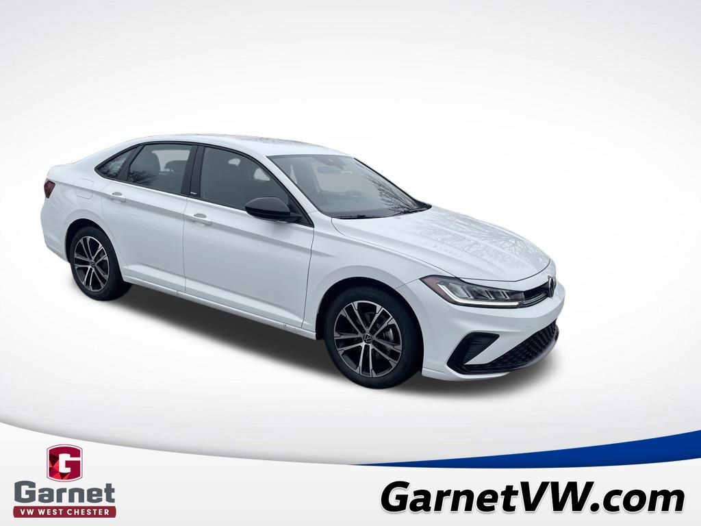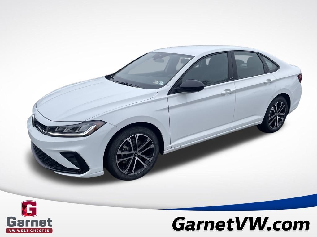 White 2026 Volkswagen Jetta 1.5T Sport FWD 8-Speed Automatic with Tiptronic 1.5L I-4 DI DOHC Turbocharged Black Cloth.