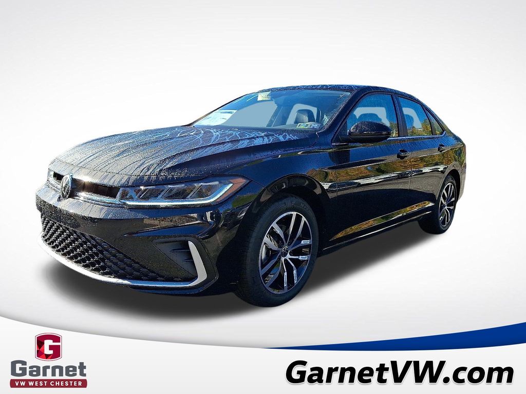 Black 2026 Volkswagen Jetta 1.5T SE FWD 8-Speed Automatic with Tiptronic 1.5L I-4 DI DOHC Turbocharged Gray Artificial Leather.