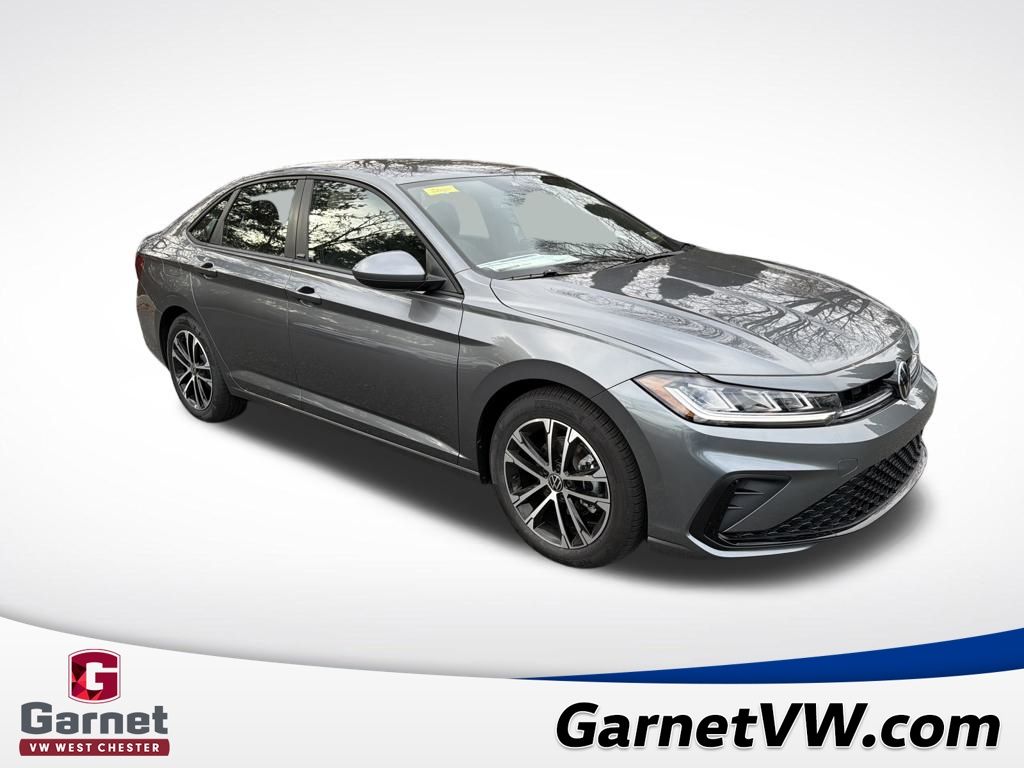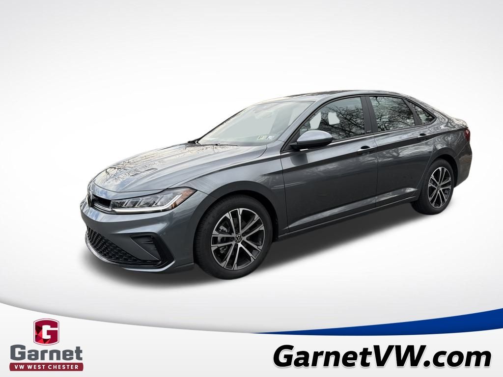 Gray 2026 Volkswagen Jetta 1.5T Sport FWD 8-Speed Automatic with Tiptronic 1.5L I-4 DI DOHC Turbocharged Black Cloth.