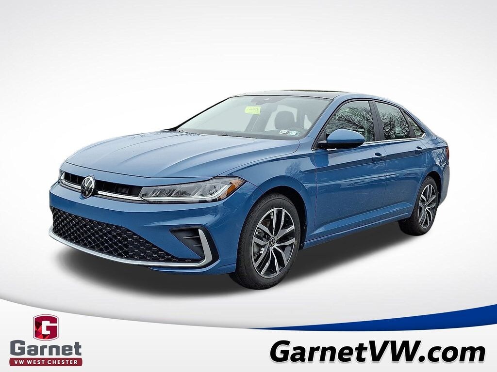 Blue 2026 Volkswagen Jetta 1.5T SE FWD 8-Speed Automatic with Tiptronic 1.5L I-4 DI DOHC Turbocharged Black Artificial Leather.